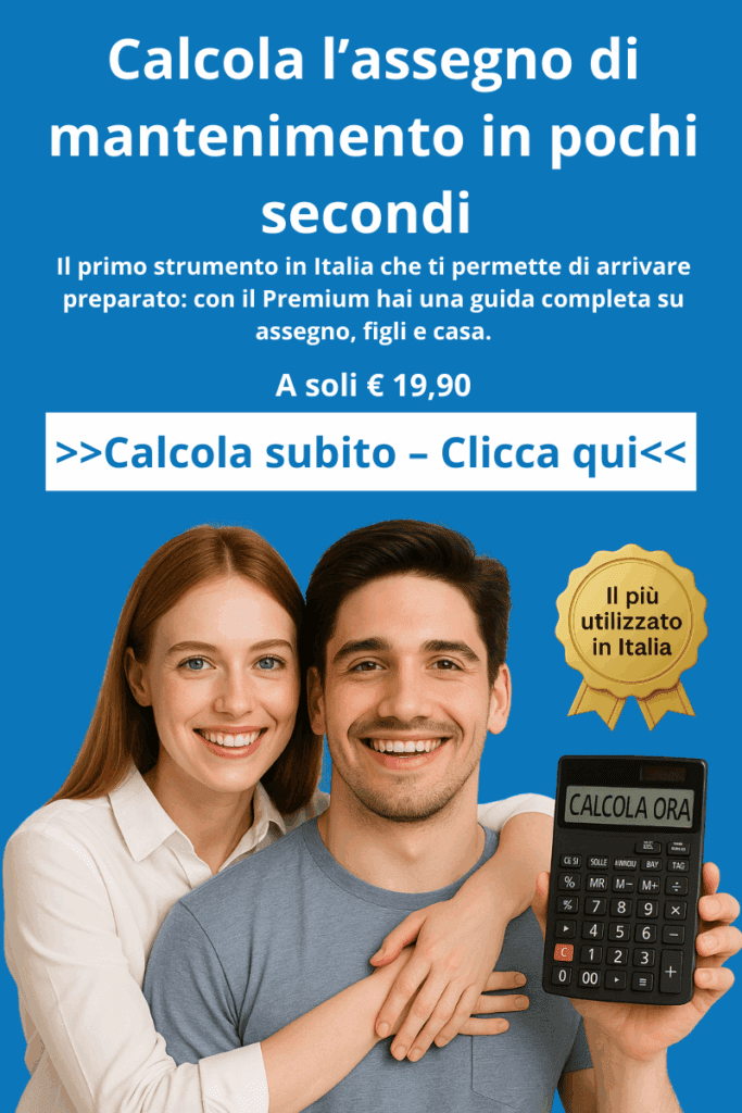 Se avete bisogno di sapere quanto versare di assegno di mantenimento, noi di Coniugi Tutelati abbiamo sviluppato un calcolatore online, in linea con i criteri adottati dai tribunali italiani e frutto della nostra grande esperienza. Con un costo bassissimo potete ottenere subito il calcolo assegno di mantenimento preciso e un documento di riepilogo con la spiegazione dettagliata di tutte le voci considerate. Per utilizzarlo basta andare sulla home page del nostro sito www.coniugitutelati.com e cliccare sulla sezione dedicata.
